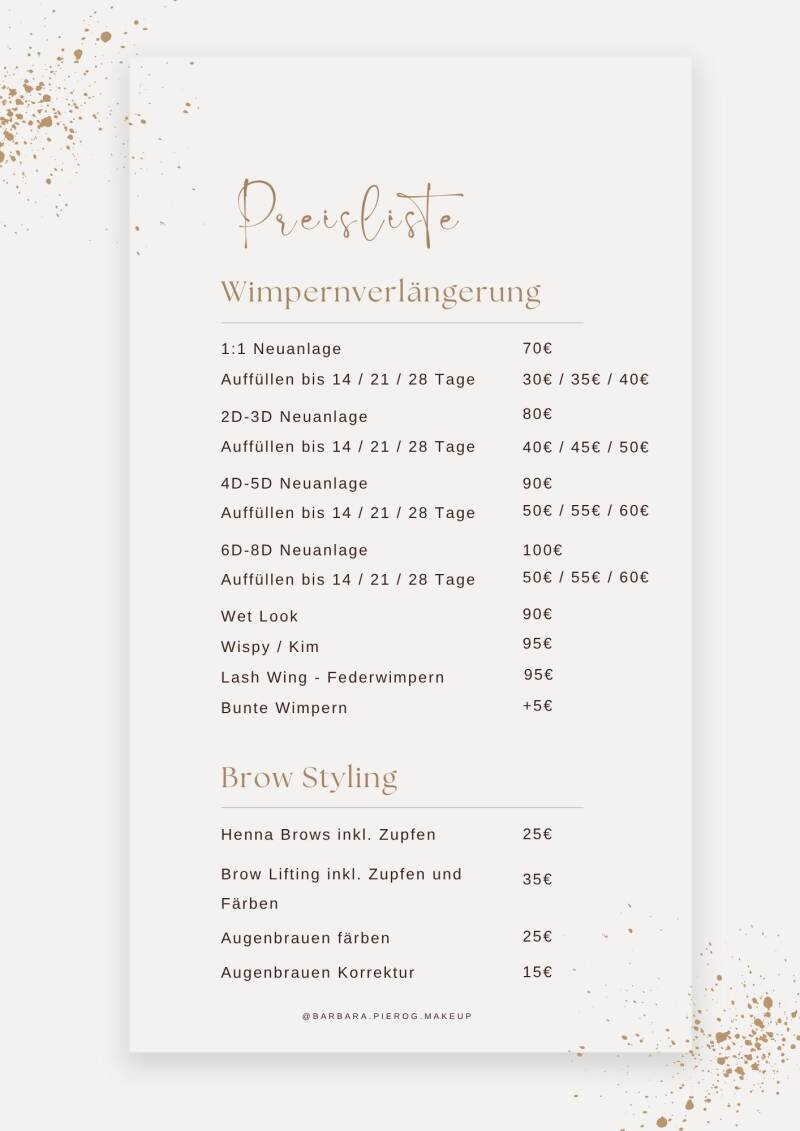 Schon bevor ich mein Studio eröffnet habe, habe ich viele Schulungen besucht und zahlreiche Zertifikate erworben. So bleibe ich immer auf dem neuesten Stand, wenn es um moderne Techniken, Trends und hochwertige Produkte geht. Ob ein dezentes Tages-Make-up, ein glamouröser Look für besondere Anlässe, perfekt gestylte Augenbrauen oder traumhaft schöne Wimpern – bei mir bist Du in guten Händen.